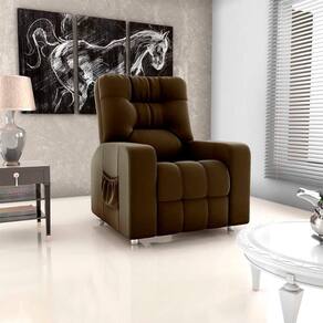 Tipo de produto: Poltrona | Modelo: Poltrona Reclinável para Sala de cinema,clinica estetica,Gamer,conforto | É com chaise: Não | É reclinável: Sim | Marca: Matrix | Linha: Azera | É de canto: Não | É sofá-cama: Não | Quantidade de lugares: 1 | Estilo: Moderno | Fabricante: Matrix | Altura Montado (cm): 77 | Largura Montado (cm): 84 | Profundidade Montado (cm): 84 | Peso Montado (Kg): 41 | Dimensões do Produto Montado (cm) (A x L x C): 77x84x84 | Quantidade de posições de reclinado: 2 | Inclui cama auxiliar: Não | Inclui colchão: Não | É em forma de U: Não | É modular: Não | Móvel Dobrável: Não | Requer montagem: Não | Inclui manual de montagem: Não | Com pés desmontáveis: Sim | País de Origem: | Produto personalizado: Não | Tipo de Garantia: Fabricante | Duração da Garantia: 3 mêses | Coleção de Antiguidade: Não | Desenho do tecido: Liso | Condição do item: | Código universal de produto: 7898632206272 | Cor: SINTETICO PRETO | Tonalidade: Preto | Quantidade de caixas de embalagem: 1 | Altura Embalagem (cm): 78 | Largura Embalagem (cm): 88 | Profundidade Embalagem (cm): 89 | Peso Embalagem (Kg): 41 | Peso máximo suportado: 120 | Material dos pés: 4 PÉS DE MADEIRA REVESTIDOS EM ALUMÍNIO. | Material do estofamento: Sintético | Material de enchimento do encosto: Espuma | Materiais da estrutura: Madeira | Densidade da espuma do assento: D23 | Cômodo Indicado: Salas e Quartos | Mecanismo de Abertura: COM AS MÃOS NAS BRAÇAS, FLEXIONE O CORPO PARA TRÁS E MÃOS PARA FRENTE. | Quantidade de peças: 1 | É sofá na caixa: Não | Com tecido removível: Não | Possui Braças: Sim | Cor: VELUDO MARROM