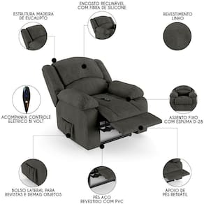 Imagine transformar sua Sala De Estar em um espaço de entretenimento de última geração com a Poltrona do Papai Reclinável Pietra Controle Power Elétrico FH9 Linho Grafite, da Mpozenato!