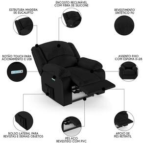 Hora de deixar a sua Sala De Estar mais moderna e transformar em um espaço de entretenimento de última geração com a Poltrona do Papai Reclinável Pietra Elétrica LED FH9 PU Preto, da Mpozenato!