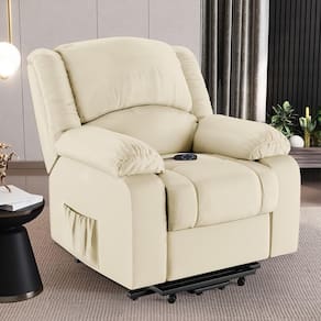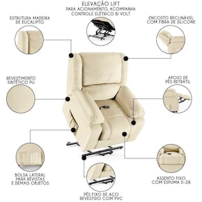 Poltrona Do Papai Reclinável Pietra Elevação Lift Elétrico Fh9 Pu Bege - Mpozenato