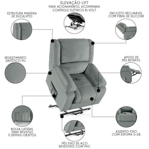Poltrona Do Papai Reclinável Pietra Elevação Lift Elétrico Fh9 Pu Cinza - Mpozenato