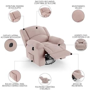 Transforme a sua Sala De Estar em um espaço de entretenimento comparável a uma sala de cinema privada! A Poltrona do Papai Reclinável Pietra Glider Giratória FH9 Veludo Rosê, da Mpozenato é a adição perfeita para alcançar esse sonho.