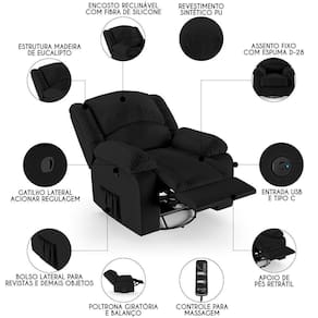 A Poltrona do Papai Reclinável Pietra Glider Giratória Massagem FH9 PU Preto, da Mpozenato é a adição perfeita para você que quer transformar a sua Sala De Estar em um espaço de entretenimento comparável a uma sala de cinema privada!