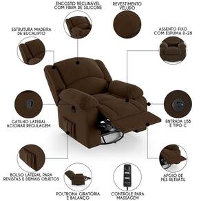A Poltrona do Papai Reclinável Pietra Glider Giratória Massagem FH9 Veludo Marrom, da Mpozenato é a adição perfeita para você que quer transformar a sua Sala De Estar em um espaço de entretenimento comparável a uma sala de cinema privada!