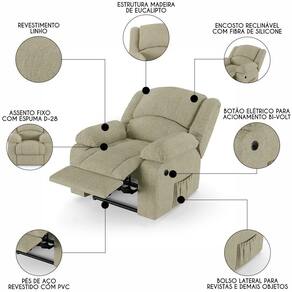 Madeira de EucaliptoTransforme sua Sala De Estar em um espaço de entretenimento de última geração com a Poltrona do Papai Reclinável Pietra Power Elétrica FH9 Linho Bege, da Mpozenato!