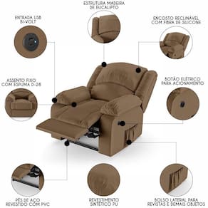 Hora de inovar a sua Sala de Estar com a Poltrona do Papai Reclinável Pietra Power Elétrica USB FH9 PU Caramelo, da Mpozenato!
