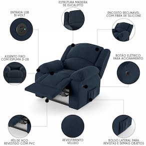 Hora de inovar a sua Sala de Estar com a Poltrona do Papai Reclinável Pietra Power Elétrica USB FH9 Veludo Azul, da Mpozenato!