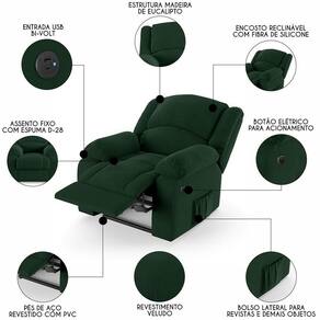 Hora de inovar a sua Sala de Estar com a Poltrona do Papai Reclinável Pietra Power Elétrica USB FH9 Veludo Verde, da Mpozenato!