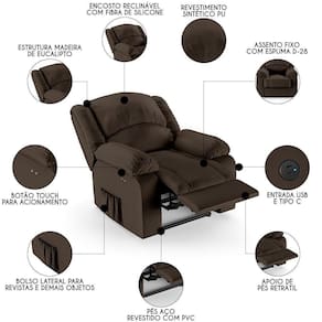 Altura: 100 cm | AssemblyRequired: Sim, sugerimos a contratação do nosso serviço de montagem (para os CEPs em que o serviço está dispon | Color: Marrom | ColorFamily: Marrom | ColorSimple: Marrom | ColorSupplier: Marrom | Cor: Marrom | Gênero: Unisex | Largura: 100 cm | Manual: Sim | Marca: Mpozenato | Material: Madeira de Eucalipto | MaterialFamily: Madeira de Eucalipto | Model: Pietra | Origem: | OriginCountry: | OriginState: PR | Peso: 62 kg | Peso Suportado: 130 Kg | ProductContents: 1 Poltrona | ProductHeight: 100 | ProductInstructions: Produto para uso em ambiente interno, nao devendo ficar exposto ao sol, calor e umidade excessivos. | ProductLength: 114 | ProductWarranty: 90 dias após o do produto | ProductWeight: 62 kg | ProductWidth: 100 | Profundidade: 114 cm | Requere montagem: Sim | SizeDescription: 100 x 100 x 114 cm | SupplierSimpleName: Poltrona do Papai Reclinável Pietra Power Touch USB FH9 PU Marrom - Mpozenato | Tipo de : Fabricante
