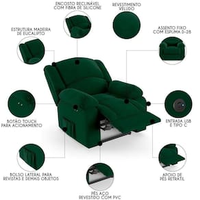 Conheça a Poltrona do Papai Reclinável Pietra Power Touch USB FH9 Veludo Verde, da Mpozenato. Ideal para transformar a sua Sala De Estar em um espaço de entretenimento de última geração!