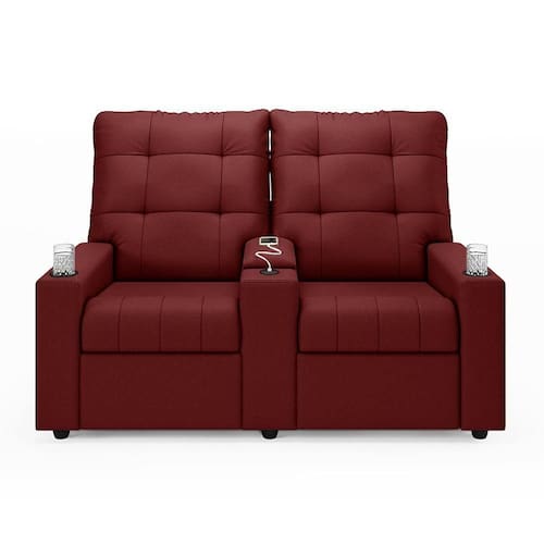 Poltrona Do Papai Reclinável Sala De Cinema 2 Lugares Manual Baú Usb Veludo Vermelho - Blush
