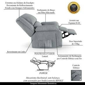Poltrona Do Papai Reclinável Sala De Cinema Barcelona Controle Power Elétrico Linho Cinza G23