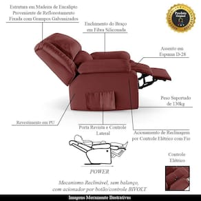 Poltrona do Papai Barcelona - Gran Belo Seja para assistir TV, ler um livro, até mesmo uma sala de cinema ou simplesmente relaxar. Com um design clássico e elegante, além disso, ela tem um apoio para os pés, que se eleva junto com o encosto, proporcionando uma posição mais ergonômica e confortável, com braços largos e apoio para os pés após reclinar ela, oferecendo um conforto inigualável. Não perca essa chance de adquirir a poltrona do papai reclinável elétrica Barcelona da Gran Belo, uma peça única que vai trazer mais conforto e sofisticação para sua sala de cinema.