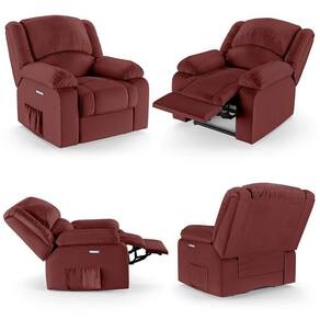 Poltrona Do Papai Reclinável Sala De Cinema Barcelona Elétrica Touch Massagem Usb Pu Vermelho - Blush