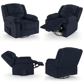 Poltrona Do Papai Reclinável Sala De Cinema Barcelona Glider Manual Giratória Usb Pu Azul G23