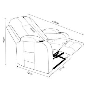 Largura do Assento: 58 cm Altura do Encosto: 60 cm Altura do Assento até o Chão: 51 cm Características do Produto: Estrutura: Composta por Madeira Maciça de Eucalipto Assento: com Molas e Espuma D-28 Encosto: Reclinável com Enchimento em Fibra de Silicone Mecanismo: LIFT elétrico ( idelal para idosos )