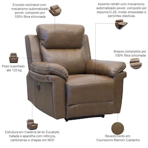 Com design robusto e linhas imponentes, essa peça combina tecnologia e conforto premium em um mecanismo retrátil reclinável automatizado - um simples toque e você encontra a posição perfeita para descansar como um rei. O revestimento em couro oferece resistência digna de um trono, enquanto a espuma de alta densidade garante apoio ergonômico que acolhe sem afundar. Perfeita para assistir aos jogos, ler aquele livro acumulado ou simplesmente fechar os olhos por alguns minutos preciosos, a Imperial é a poltrona de couro que conquista toda a família com seu conforto inteligente e estilo majestoso.
