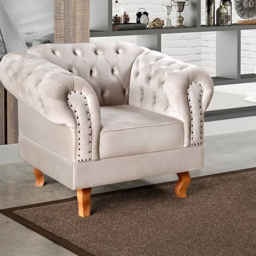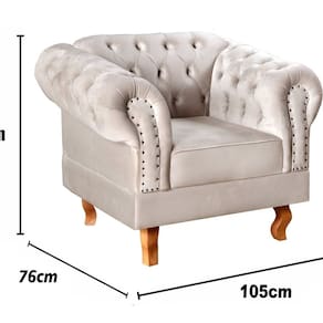 Poltrona Dom Pedro Chesterfield Retrô Decorativa Bege Claro
