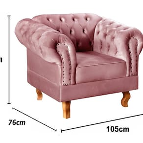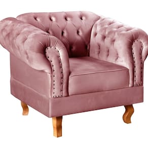 Não rasgue a embalagem antes de ter certeza que ficará com tudo. Acompanha Almofadas extras: Não Acompanha Puff: Não Almofada do assento: Removível Almofada do encosto: Não Possui Altura do assento até o chão: 41 cm Altura do Encosto: 82 cm Ambiente Principal: Sala de Estar Complexidade da Montagem: Baixa: pode ser montado por uma pessoa sozinha Cor: Rose Cor do Produto: Rosê Design Assinado: Não Enchimento do Assento: Espuma D-26 Enchimento do Braço: Espuma D-26 Encosto para a Cabeça: Não Estampado: Não Extensível: Não Firmeza do Assento: Médio Informações Complementares: 120Kg por acento Itens Inclusos: 1 Poltrona Dom Pedro (incluindo seus respectivos pés apenas pra enroscar) Linha ou Coleção: Chesterfield Material do Braço: Madeira Eucalipto Material dos Pés: Madeira Eucalípto Modelo de Poltrona: Fixo Necessita Montagem: Sim Origem do Produto: Nacional Peso: 35 kg Possui Percintas Elásticas: Sim Possui Pés: 04 Possui Rodízio: Não Recomendações de Uso, Manutenção e Limpeza: Limpeza e cuidados: pode ser utilizado aspirador de pó, escova com cerdas macias ou limpeza a seco. Não utilizar produtos químicos, abrasivos ou limpeza a vapor. Evitar exposição prolongada ao sol. Sistema de Montagem: Enroscar os Pés Suporta Até (kg): 120 kg Tecido Predominante: Veludo Tipo de Assento: Fixo Tipo de Encosto: Fixo Tipo de Espuma do Assento: Espuma Convencional Tipo de Poltrona: Decorativa