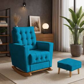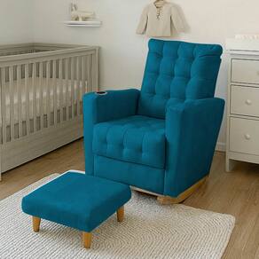 Poltrona Duna Amamentação Balanço e Puf Turquesa - Azul Turquesa