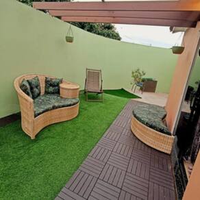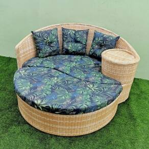 Revestimento trançado fibra sintética com tratamento Uv, resistente a sol e chuva, podendo ser lavado normalmente sem risco de danos