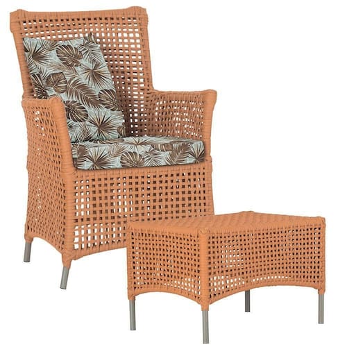 A corda nautica adiciona um toque de rusticidade moderna, enquanto o estofado impermeavel garante que sua poltrona esteja sempre impecavel, mesmo apos uma chuva inesperada ou um acidente com liquidos.