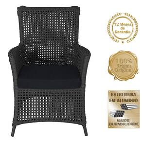 Itens Inclusos: 01 Poltrona e 01 Mesa Igapo em Aluminio Pintura Preta Corda Nautica Estofado 12