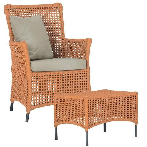 Poltrona E Mesa Igapó Em Alumínio Preta Corda Náutica E7 Terra Cota