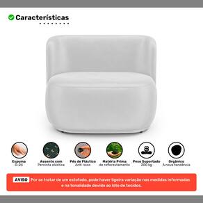 Estrutura: Madeira de Eucalipto; Estofamento: Espuma D-24; Revestimento: Couríssimo Sintético (PU); Pés: PlásticoPoltrona e Namoradeira Orgânica Molly - Conforto, elegância e estilo orgânico para transformar seu ambiente!