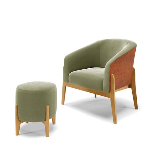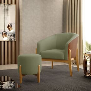 A Poltrona Stella é a combinação perfeita de conforto, elegância e modernidade. Seu design curvo e marcante oferece uma sensação única de aconchego, como um abraço acolhedor, tornando-se a peça ideal para compor sua decoração com estilo e sofisticação. Revestida em Sintético PU Nozes com Bouclê, a poltrona traz o toque da tendência atual. Seja na sala de estar, quarto ou escritório, ela se adapta com facilidade. Sua estrutura robusta é sustentada por uma base de madeira (fixa), unindo resistência e design contemporâneo. A tendência desse estilo minimalista ganha destaque, conferindo sofisticação ao móvel, que é perfeito para qualquer espaço que exija funcionalidade e bom gosto. Com enchimento em espuma D-23 no encosto e assento, o kit Poltrona Stella garante o máximo de conforto, mesmo em longos períodos de uso. O conjunto, acompanha um lindo puff que é ideal para você apoiar os pés, garantindo descanso absoluto. Além desse modelo, também temos várias opções em base/pés e uma grande variedade de tecido/cores para atender ao seu estilo e conforto. E para deixar seu ambiente ainda mais harmonioso, oferecemos também kits especiais no mesmo design. Caso queira ajuda para escolher a melhor opção para o seu espaço, estamos à disposição!