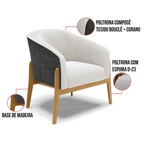 A Poltrona Stella é a combinação perfeita de conforto, elegância e modernidade. Seu design curvo e marcante oferece uma sensação única de aconchego, como um abraço acolhedor, tornando-se a peça ideal para compor sua decoração com estilo e sofisticação. Revestida em Sintético PU Preto com Bouclê, a poltrona traz o toque da tendência atual. Seja na sala de estar, quarto ou escritório, ela se adapta com facilidade. Sua estrutura robusta é sustentada por uma base de madeira (fixa), unindo resistência e design contemporâneo. A tendência desse estilo minimalista ganha destaque, conferindo sofisticação ao móvel, que é perfeito para qualquer espaço que exija funcionalidade e bom gosto. Com enchimento em espuma D-23 no encosto e assento, o kit Poltrona Stella garante o máximo de conforto, mesmo em longos períodos de uso. O conjunto, acompanha um lindo puff que é ideal para você apoiar os pés, garantindo descanso absoluto. Além desse modelo, também temos várias opções em base/pés e uma grande variedade de tecido/cores para atender ao seu estilo e conforto. E para deixar seu ambiente ainda mais harmonioso, oferecemos também kits especiais no mesmo design. Caso queira ajuda para escolher a melhor opção para o seu espaço, estamos à disposição!