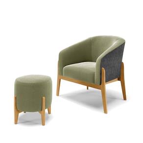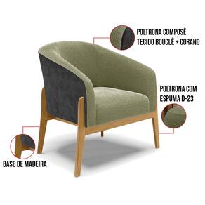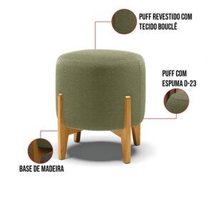 Poltrona e Puff Decorativo Base Madeira Stella PU Preto/Bouclê D03 - D`Rossi - Preto