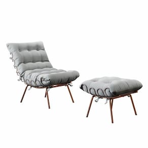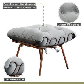 Poltrona E Puff M07 Estrutura De Ferro Mais Decor Cobre/cinza Dona de uma tonalidade classica e design que se destaca em qualquer ambiente, a Poltrona M07 vai oferecer o empurraozinho que seu lar-style precisa para ficar impecavel. Com estrutura moderna, o cantinho em que escolher posiciona-la - seja sala de estar, dormitorio ou home office - ficara aconchegante e os momentos relax serao muito mais completos e prazerosos, ainda mais porque ela e acompanhada por um puff de bom gosto. De quebra, a decoracao vai ganhar uma aliada de muito charme e que sera essencial para deixar o dia a dia ai na sua casa mais bonito e sofisticado. Caracteristicas: Marca: Mais Decor Modelo: M07 Tecido Predominante: Linho Material da Estrutura: Ferro Tipo de Poltrona: Decorativa Acompanha Puff: Sim Tipo de Encosto: Fixo Almofada do Encosto: Fixa Enchimento do Encosto: Espuma D-18 Altura do Encosto: 50 cm Tipo de Espuma do Encosto: Fibra Siliconada Tipo de Assento: Fixo Altura do Assento ate o Chao: 48 cm Enchimento do Assento: Fibra Siliconada Firmeza do Assento: Macio Tipo de Espuma do Assento: Fibra Siliconada Possui Apoio para Bracos: Nao Possui Pes: 08 Material dos Pes: Ferro Altura dos Pes: 30 cm Necessita Montagem: Nao Recomendacoes de Uso, Manutencao e Limpeza: Uma boa maneira de aumentar o tempo de vida util do seu sofa e evitar exposicao direta do estofado ao sol, ja que os raios podem queimar e manchar a grande maioria dos tecidos desses itens da sua casa. Suporta Ate (kg): 120 Possui Percintas Elasticas: Nao