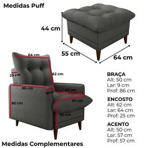Conjunto Poltrona com Puff Montreal combina conforto e funcionalidade, composto por duas peças ideais para momentos de descanso ou amamentação. A poltrona conta com sistema reclinável de dois estágios (modo leitura e descanso), estrutura em madeira de Eucalipto de reflorestamento, reforçado com precintas elásticas. O assento e encosto são preenchidos com uma combinação de fibra siliconada e flocos de espuma (assim como o Puff), enquanto as braças são em espuma D23, o revestimento em tecido Vancouver Linen (linho misto com toque leve, visual contemporâneo e ótima resistência). Os pés também em madeira completam, suportando até 110 kg por assento. Este móvel chegará em sua casa separado em 01 volume.