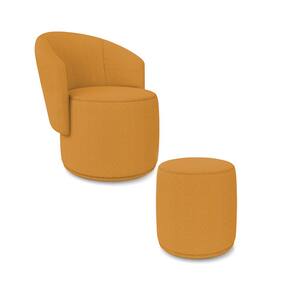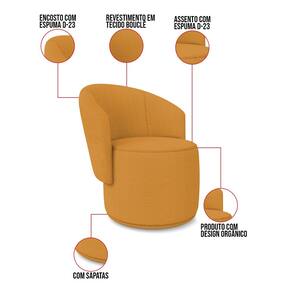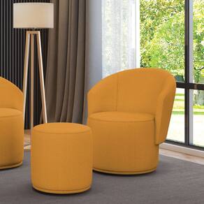 Poltrona e Puff Redondo Orgânico para Sala Malu Bouclê M11 - D`Rossi - Mostarda