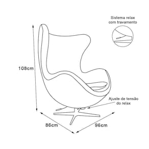 Poltrona Egg Sem Puff Base AlumÍnio Em Sued BegeA poltrona Egg deixa o ambiente mais bonito, aconchegante e único, perfeita para recepcionar bem aos convidados, clientes ou até mesmo para uso cotidiano, proporcionando um ótimo conforto com material de alta qualidade. Possui mecanismo relax com trava giratória, com travamento, ajuste da tensão do relax e sapatas niveladoras. Design autentico e assinado pelo renomado designer Arne Jacobsen.CARACTERÍSTICASTipo: Poltrona Modelo: Egg Cor: Bege Tecido: Sued Base: AlumÍnio Mecanismo: Relax Trava Giratória Ajuste de tensão do relaxDIMENSÕES DO PRODUTOAltura: 108cm Largura: 86cm Comprimento: 96cmIMAGENS MERAMENTE ILUSTRATIVAS (PODE HAVER UMA VARIAÇ;ÃO DE COR DEPENDENDO DE CADA MONITOR OU TELA)Poltrona Egg sem Puff Base AlumÃnio em Sued Bege