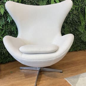 A Egg Chair, desenhada por Arne Jacobsen em 1958, é um ícone do design moderno e um exemplo clássico da estética funcionalista escandinava. Originalmente concebida para o lobby do hotel SAS Royal em Copenhague, a poltrona Egg é reconhecida por sua forma única e envolvente, que lembra a casca protetora de um ovo, proporcionando privacidade e conforto ao usuário.