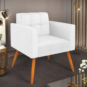 Você gosta de colecionar vários momentos memoráveis com sua família e amigos? Que tal recebê-los, com móveis de altíssima qualidade que só a DRossi tem? A Poltrona Elisa é adequada para você! Seu design retrô é a grande tendência do momento. Pode ser usada em diversos espaços da casa, em salas, hall de entrada, quartos, cozinhas, varanda, sacada, escritório, dentre outros. Contém as seguintes características: A estrutura é feita de madeira de Eucalipto 100% de reflorestamento, e os Pés Palito Castanho, além de serem resistentes e duráveis, suportam em média até 120 kg. Assento, encosto e braços, contém enchimento de espuma D-23 e é estofada em tecido Corino, no tom Branco, que oferece muito conforto e resistência ao sentar, com aquela sensação de maciez e aconchego. Possui também, detalhes de costura no encosto e assento, resultando em um acabamento impecável, conferindo muito mais valor e elegância ao seu espaço. Para complementar a decoração com essa linda poltrona, a dica é utilizar mantas, almofadas ou vasinho de flor. E pronto, seu cantinho estará perfeito para descansar e relaxar! Aqui, você encontra várias opções, para que seus amigos e familiares se sintam acolhidos. Garanta já sua Poltrona.