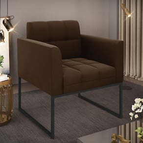 Você gosta de colecionar vários momentos memoráveis com sua família e amigos? Que tal recebê-los, com móveis de altíssima qualidade que só a DRossi tem? A Poltrona Elisa é adequada para você! Seu design retrô é a grande tendência do momento. Pode ser usada em diversos espaços da casa, em salas, hall de entrada, quartos, cozinhas, varanda, sacada, escritório, dentre outros. Contém as seguintes características: A estrutura é feita de madeira de Eucalipto 100% de reflorestamento, e a Base Industrial Metálica Preto, além de ser resistente e durável, suporta em média até 120 kg. Assento, encosto e braços, contém enchimento de espuma D-23 e é estofada em tecido Suede, no tom Marrom, que oferece muito conforto e resistência ao sentar, com aquela sensação de maciez e aconchego. Possui também, detalhes de costura no encosto e assento, resultando em um acabamento impecável, conferindo muito mais valor e elegância ao seu espaço. Para complementar a decoração com essa linda poltrona, a dica é utilizar mantas, almofadas ou vasinho de flor. E pronto, seu cantinho estará perfeito para descansar e relaxar! Aqui, você encontra várias opções, para que seus amigos e familiares se sintam acolhidos. Garanta já sua Poltrona.