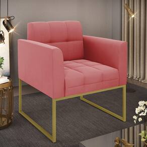 Você gosta de colecionar vários momentos memoráveis com sua família e amigos? Que tal recebê-los, com móveis de altíssima qualidade que só a DRossi tem? A Poltrona Elisa é adequada para você! Seu design retrô é a grande tendência do momento. Pode ser usada em diversos espaços da casa, em salas, hall de entrada, quartos, cozinhas, varanda, sacada, escritório, dentre outros. Contém as seguintes características: A estrutura é feita de madeira de Eucalipto 100% de reflorestamento, e a Base Industrial Metálica Dourada, além de ser resistente e durável, suporta em média até 120 kg. Assento, encosto e braços, contém enchimento de espuma D-23 e é estofada em tecido Suede, no tom Rosê, que oferece muito conforto e resistência ao sentar, com aquela sensação de maciez e aconchego. Possui também, detalhes de costura no encosto e assento, resultando em um acabamento impecável, conferindo muito mais valor e elegância ao seu espaço. Para complementar a decoração com essa linda poltrona, a dica é utilizar mantas, almofadas ou vasinho de flor. E pronto, seu cantinho estará perfeito para descansar e relaxar! Aqui, você encontra várias opções, para que seus amigos e familiares se sintam acolhidos. Garanta já sua Poltrona.