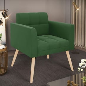 Você gosta de colecionar vários momentos memoráveis com sua família e amigos? Que tal recebê-los, com móveis de altíssima qualidade que só a DRossi tem? A Poltrona Elisa é adequada para você! Seu design retrô é a grande tendência do momento. Pode ser usada em diversos espaços da casa, em salas, hall de entrada, quartos, cozinhas, varanda, sacada, escritório, dentre outros. Contém as seguintes características: A estrutura é feita de madeira de Eucalipto 100% de reflorestamento, e os Pés Palito Natural, além de serem resistentes e duráveis, suportam em média até 120 kg. Assento, encosto e braços, contém enchimento de espuma D-23 e é estofada em tecido Suede, no tom Verde, que oferece muito conforto e resistência ao sentar, com aquela sensação de maciez e aconchego. Possui também, detalhes de costura no encosto e assento, resultando em um acabamento impecável, conferindo muito mais valor e elegância ao seu espaço. Para complementar a decoração com essa linda poltrona, a dica é utilizar mantas, almofadas ou vasinho de flor. E pronto, seu cantinho estará perfeito para descansar e relaxar! Aqui, você encontra várias opções, para que seus amigos e familiares se sintam acolhidos. Garanta já sua Poltrona.