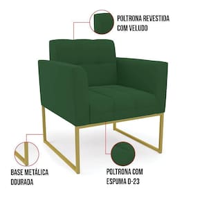 Poltrona Elisa Veludo Base Metálica Industrial Dourado - D\\'rossi Cor Verde