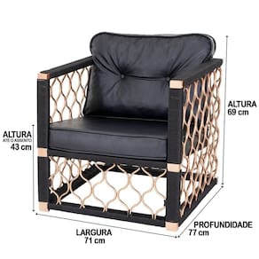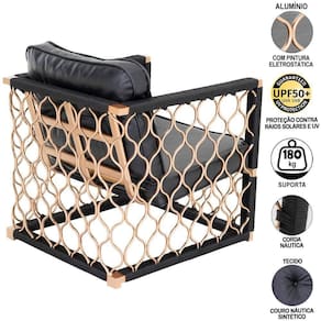 Poltrona Trama Em Alumínio Bronze Corda Náutica, Assento Estofado área Externa Cor Preta