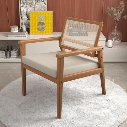 A poltrona Caraíva é o móvel ideal para quem procura design e estilo com conforto e funcionalidade. É perfeita para incrementar a decoração de diversos espaços, como sala de estar, quarto, home office e cantinho dedicado à leitura. Acompanha Almofadas extras: Não Acompanha Puff: Não Almofada do assento: Fixa Almofada do encosto: Não Possui Altura do assento até o chão: 45 Altura do Encosto: 78,5 cm Ambiente Principal: Sala de Estar Complexidade da Montagem: Baixa: pode ser montado por uma pessoa sozinha Cor: Areia Cor do Produto: Areia Design Assinado: Não Enchimento do Assento: Espuma D-23 Enchimento do Braço: Não Possui Encosto para a Cabeça: Não Estampado: Não Extensível: Não Firmeza do Assento: Macio Itens Inclusos: 1 Poltrona e manual de instrução Manual de Montagem e Instalação: https://product-hub-prd.madeiramadeira.com.br/859285/documents/346868eb-4ec4-4120-86df-bb8660a47cae1403623poltronacaraIva.pdf Material do Braço: madeira Material dos Pés: Pinus Modelo de Poltrona: Fixo Necessita Montagem: Sim Origem do Produto: Nacional Peso: 10 Possui Percintas Elásticas: Não Possui Pés: 04 Possui Rodízio: Não Recomendações de Uso, Manutenção e Limpeza: Assento/encosto: use aspirador de pó para eliminar a poeira. Caso seja necessário, passe um pano umedecido em água e sabão neutro e aplique em movimentos suaves a favor do fio do tecido. Enxugue com um pano limpo e seco. Se precisar lavar, faça somente lavagem a seco e leve até uma empresa especializada. Estrutura de madeira: use um pano umedecido com água. Enxugue em seguida com um pano limpo e seco. Cuidados: não use produtos químicos ou abrasivos. A poltrona Air deve ser utilizada em ambientes internos para que não seja exposta a agentes marromis (chuva, sol e umidade). Resistente à Chuva: Não Sistema de Montagem: Parafusos Suporta Até (kg): 100 Tecido Predominante: Linho Tipo de Assento: Fixo Tipo de Encosto: Fixo Tipo de Espuma do Assento: Espuma Convencional Tipo de Poltrona: Decorativa Ean: 7909903355336
