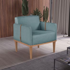 A poltrona Duali tem um design único, é uma obra prima impressionando com seu braços revestidos em courino, dando conforto e o toque de requinte que seu ambiente merece. Além de conforto e sofisticação, ela tem um acabamento com cinto em couro sintético. A poltrona Duali é feita em madeira eucalipto reflorestada e sua a base é feita em madeira Tauari (madeira maciça). Possui espuma D28 soft de 60mm no assento e 40mm no encosto, de ótima qualidade, revestida com uma manta siliconada antialérgica, possui ainda percintas elásticas. Um produto super versátil que, com seu design, traz a sensação de conforto e aconchego onde ele for aplicado. Feito em tecido linho de alta qualidade. Acompanha Almofadas extras: Não Acompanha Puff: Não Almofada do assento: Fixa Almofada do encosto: Fixa Altura do assento até o chão: 45 Altura do Encosto: 35 Altura dos Pés: 30 Ambiente Principal: Sala de Estar Cor: Azul Cor do Produto: Azul Design Assinado: Não Enchimento do Assento: Espuma D-28 Enchimento do Braço: Não Possui Enchimento do Encosto: Espuma D-28 Encosto para a Cabeça: Não Estampado: Não Extensível: Não Firmeza do Assento: Médio Informações Complementares: As fotos podem sofrer alteração de cor conforme a calibragem da tela do celular ou computador. Itens Inclusos: 1 Poltrona Material do Braço: Madeira Material dos Pés: madeira Modelo de Poltrona: Fixo Necessita Montagem: Não Origem do Produto: Nacional Peso: 15 Possui Percintas Elásticas: Sim Possui Pés: 04 Possui Rodízio: Não Recomendações de Uso, Manutenção e Limpeza: Umedeça um pano limpo e passe sobre a superfície e logo em seguida passando outro pano limpo e seco. Não molhar! Evitar exposição ao sol para que não sofra alterações na cor do tecido. Não utilizar escovas ou cedras duras. Suporta Até (kg): 150 Tecido Predominante: Linho Tipo de Assento: Fixo Tipo de Encosto: Fixo Tipo de Espuma do Assento: Soft Tipo de Poltrona: Decorativa Marca: Agarb Decor Ean: 7909903383605