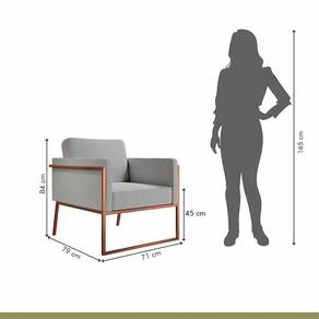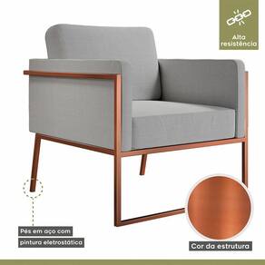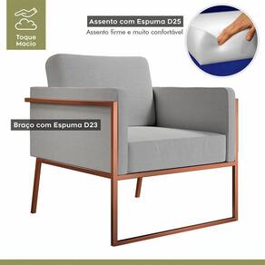 Poltrona Em Linho M04 Estrutura Em Ferro Mais Decor Cobre/cinza Dona de uma tonalidade classica e design que se destaca em qualquer ambiente, a Poltrona M04 vai oferecer o empurraozinho que seu lar-style precisa para ficar impecavel. Com estrutura moderna, o cantinho em que escolher posiciona-la - seja sala de estar, dormitorio ou home office - ficara aconchegante e os momentos relax serao muito mais completos e prazerosos. De quebra, a decoracao vai ganhar uma aliada de muito charme e que sera essencial para deixar o dia a dia ai na sua casa mais bonito e sofisticado. Caracteristicas: Marca: Mais Decor Modelo: M04 Tecido Predominante: Linho Material da Estrutura: Ferro Tipo de Poltrona: Decorativa Acompanha Puff: Nao Tipo de Encosto: Fixo Almofada do Encosto: Fixa Enchimento do Encosto: Espuma D-18 Altura do Encosto: 40 cm Tipo de Espuma do Encosto: Fibra Siliconada Tipo de Assento: Fixo Altura do Assento ate o Chao: 45 cm Enchimento do Assento: Espuma D-26 Firmeza do Assento: Medio Tipo de Espuma do Assento: Espuma Convencional Material do Braco: Madeira Possui Apoio para Bracos: Sim Enchimento do Braco: Nao Possui Possui Pes: 04 Material dos Pes: Ferro Altura dos Pes: 31 cm Necessita Montagem: Nao Recomendacoes de Uso, Manutencao e Limpeza: Uma boa maneira de aumentar o tempo de vida util do seu sofa e evitar exposicao direta do estofado ao sol, ja que os raios podem queimar e manchar a grande maioria dos tecidos desses itens da sua casa. Suporta Ate (kg): 120 Possui Percintas Elasticas: Sim