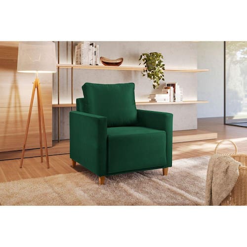 O estofado Angela oferece requinte e beleza, com estilo minimalista que podem adequar ao seu espaço e estilo, ele vai deixar o espaço mais aconchegante da sua casa o jeito que você queria. Conte com várias opções de cores para combinar com seu ambiente. 832547: 848139 =B2=A2: =B83=A83 Acompanha Almofadas extras: Não Acompanha Puff: Não Almofada do assento: Fixa Almofada do encosto: Removível Altura do assento até o chão: 48 Altura do Encosto: 50 Altura dos Pés: 10 Ambiente Principal: Sala de Estar Complexidade da Montagem: Baixa: pode ser montado por uma pessoa sozinha Cor: Verde Cor do Produto: Verde Design Assinado: Não Enchimento do Assento: Espuma D-23 Enchimento do Braço: Espuma D-18 Enchimento do Encosto: Fibra Siliconada Encosto para a Cabeça: Não Estampado: Não Extensível: Não Firmeza do Assento: Médio Itens Inclusos: 1 Poltrona, Manual de Montagem. Manual de Montagem e Instalação: https://cdn2.madeiramadeira.com.br/atributo/takei-estofados/1321087-poltrona-angela.pdf Material do Braço: Espuma Material dos Pés: Madeira Maciça Modelo de Poltrona: Fixo Necessita Montagem: Sim Origem do Produto: Nacional Peso: 34.2 Possui Percintas Elásticas: Sim Possui Pés: 04 Possui Rodízio: Não Recomendações de Uso, Manutenção e Limpeza: Evitar exposição direta à luz solar, limpar com escova macia e aspirar o pó semanalmente. Não utilizar produtos químicos, removedores, alvejantes, etc. Resistente à Chuva: Não Sistema de Montagem: Buchas internacionais Suporta Até (kg): 100 Tecido Predominante: Veludo Tipo de Assento: Fixo Tipo de Encosto: Regulável Tipo de Espuma do Assento: Espuma Convencional Tipo de Espuma do Encosto: Fibra Siliconada Tipo de Poltrona: Decorativa