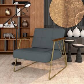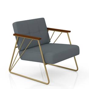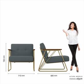 Detalhes Técnicos das Poltronas - Assento e Encosto Tapeçados, Estofados e Fixos - Espuma do Assento e do Encosto: D20 - Tonalidade Estrutura: Dourado - Tonalidade Estofado: Suede Cinza - Material: Metalon - Medida Poltrona: A:78CM x L:71CM x P:88CM - Altura do assento ao chão:42CM - Poltrona suporta até 120KG