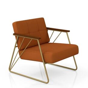 Detalhes Técnicos das Poltronas - Assento e Encosto Tapeçados, Estofados e Fixos - Espuma do Assento e do Encosto: D20 - Tonalidade Estrutura: Dourado - Tonalidade Estofado: Suede Terracota - Material: Metalon - Medida Poltrona: A:78CM x L:71CM x P:88CM - Altura do assento ao chão:42CM - Poltrona suporta até 120KG