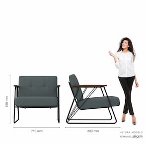 A Poltrona Columbia tem um visual robusto do estilo industrial com o conforto que você merece. Estrutura de aço resistente e estofado macio e durável, ideal para ambientes que pedem elegância com personalidade.